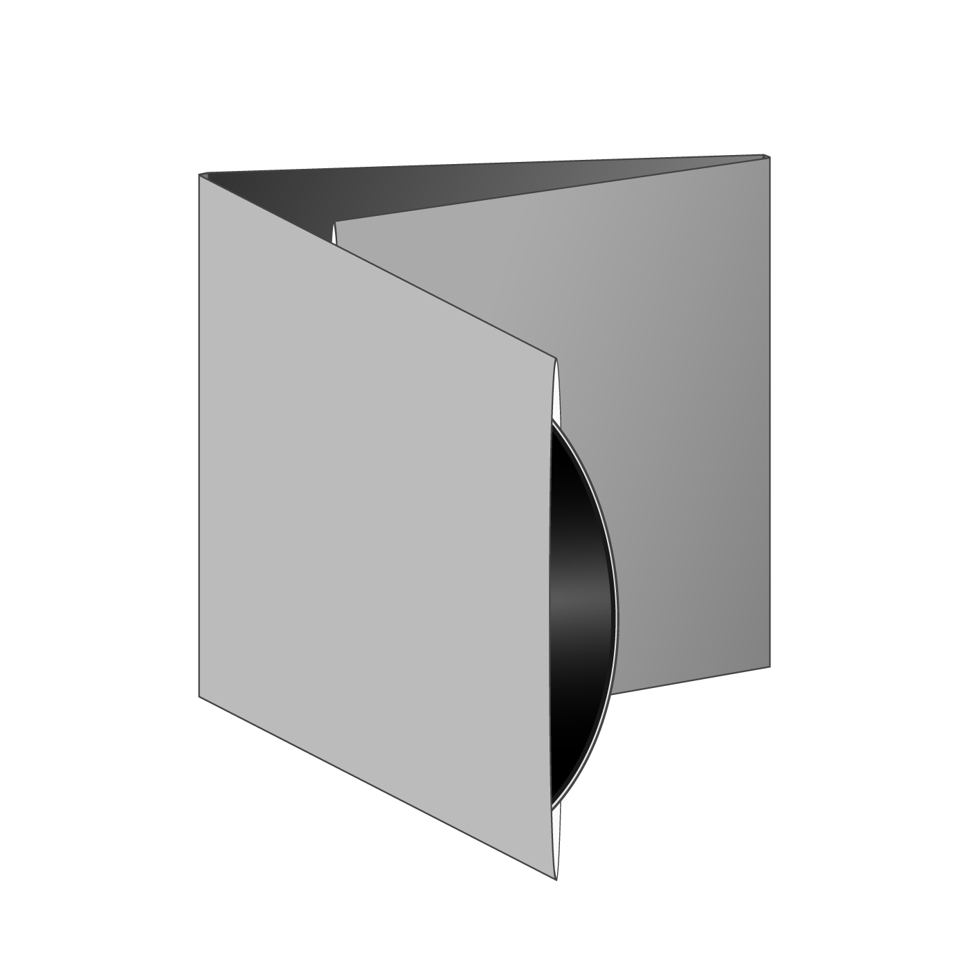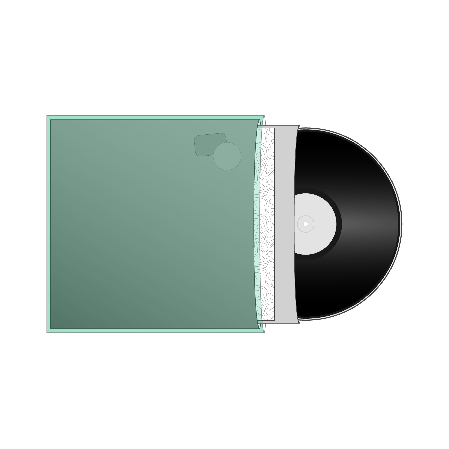 This is the most common vinyl record packaging option. This option easily fits a record with an insert and a thinner booklet. Making wider spines for double or triple LP albums or thicker booklets is also possible.