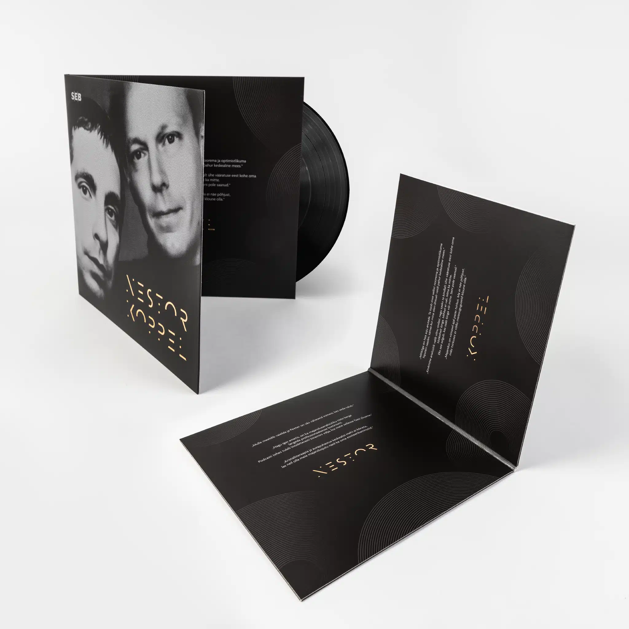 The technology is the same as case-wrapped sleeves, where thick cardboard is used as a base, printed on 150 g paper, glued on top, and laminated. You will get a very durable and aesthetically pleasing record package.