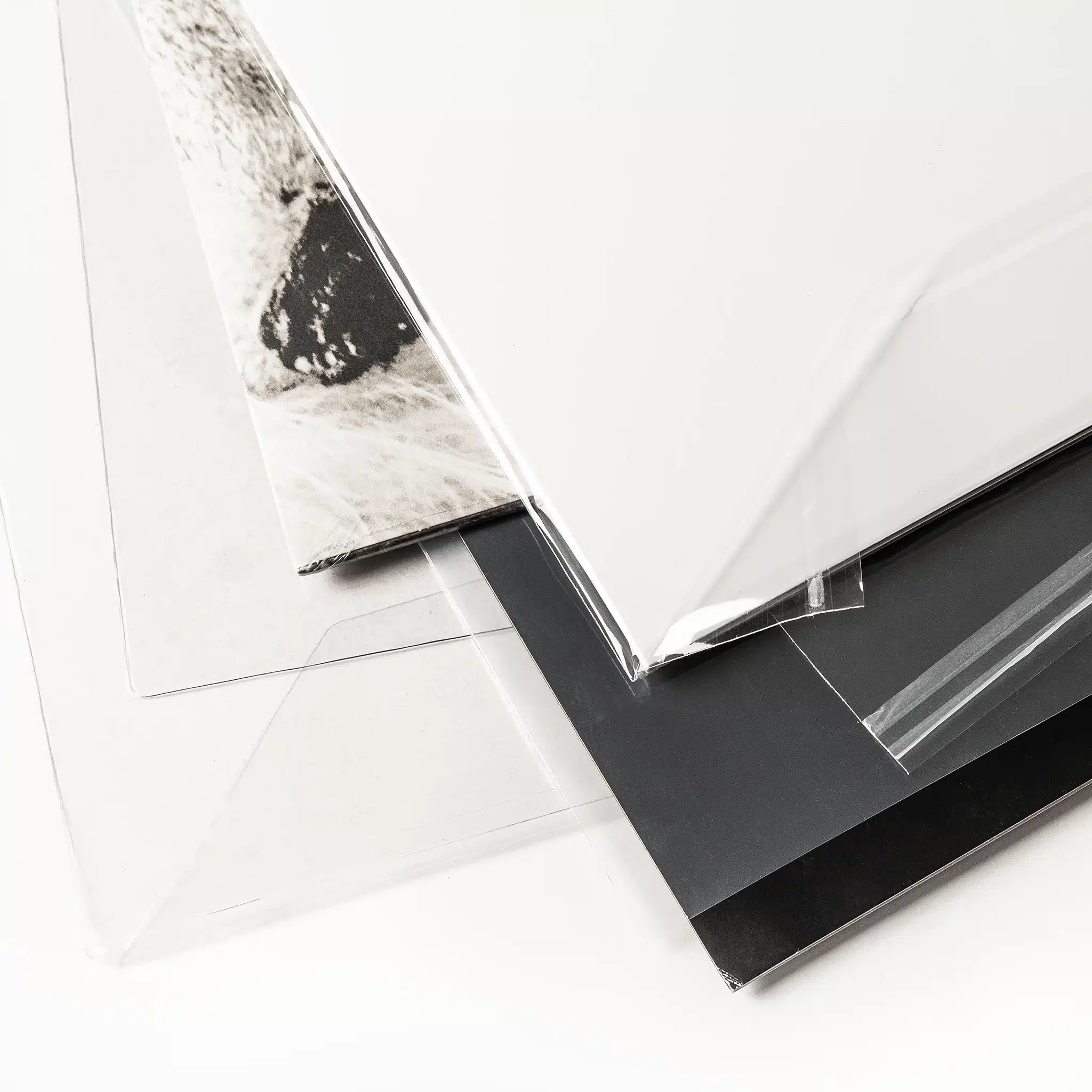 White or black paper without the added HDPE layer. This standard option for 7" vinyl packaging is also available for 12" records on request.