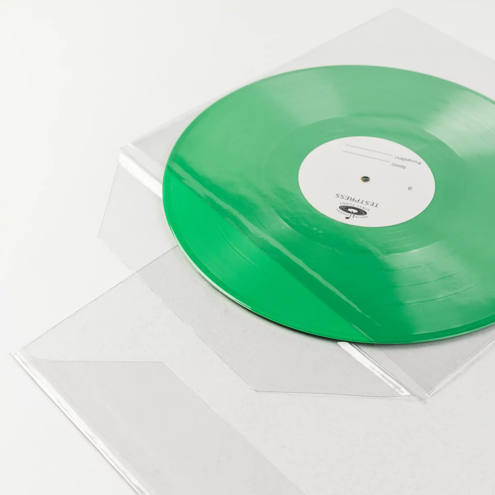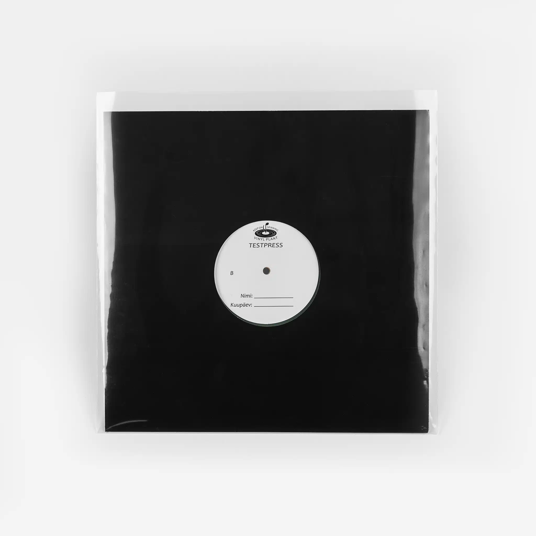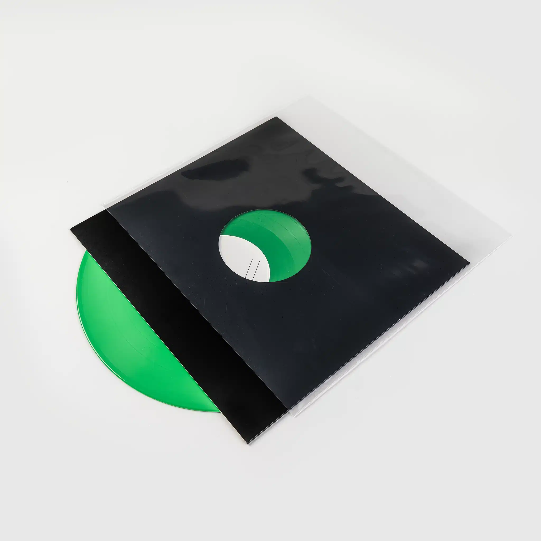 White or black paper lined with a thin layer of HDPE is carefully folded and glued into a sleeve. Antistatic plastic also covers the centre hole. This standard option for 12" vinyl is also available for 10" and 7" records on request.